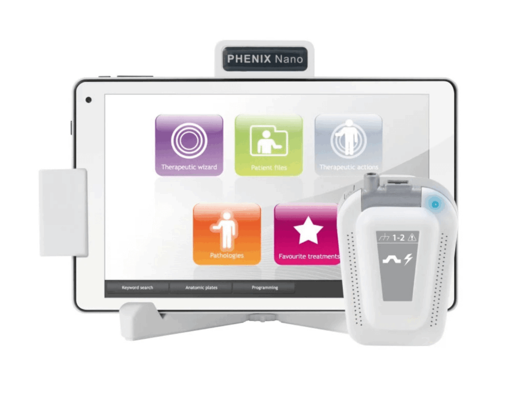Dispozitiv compact și portabil, cu biofeedback și electrostimulare, ideal pentru cabinet sau utilizare la domiciliu.